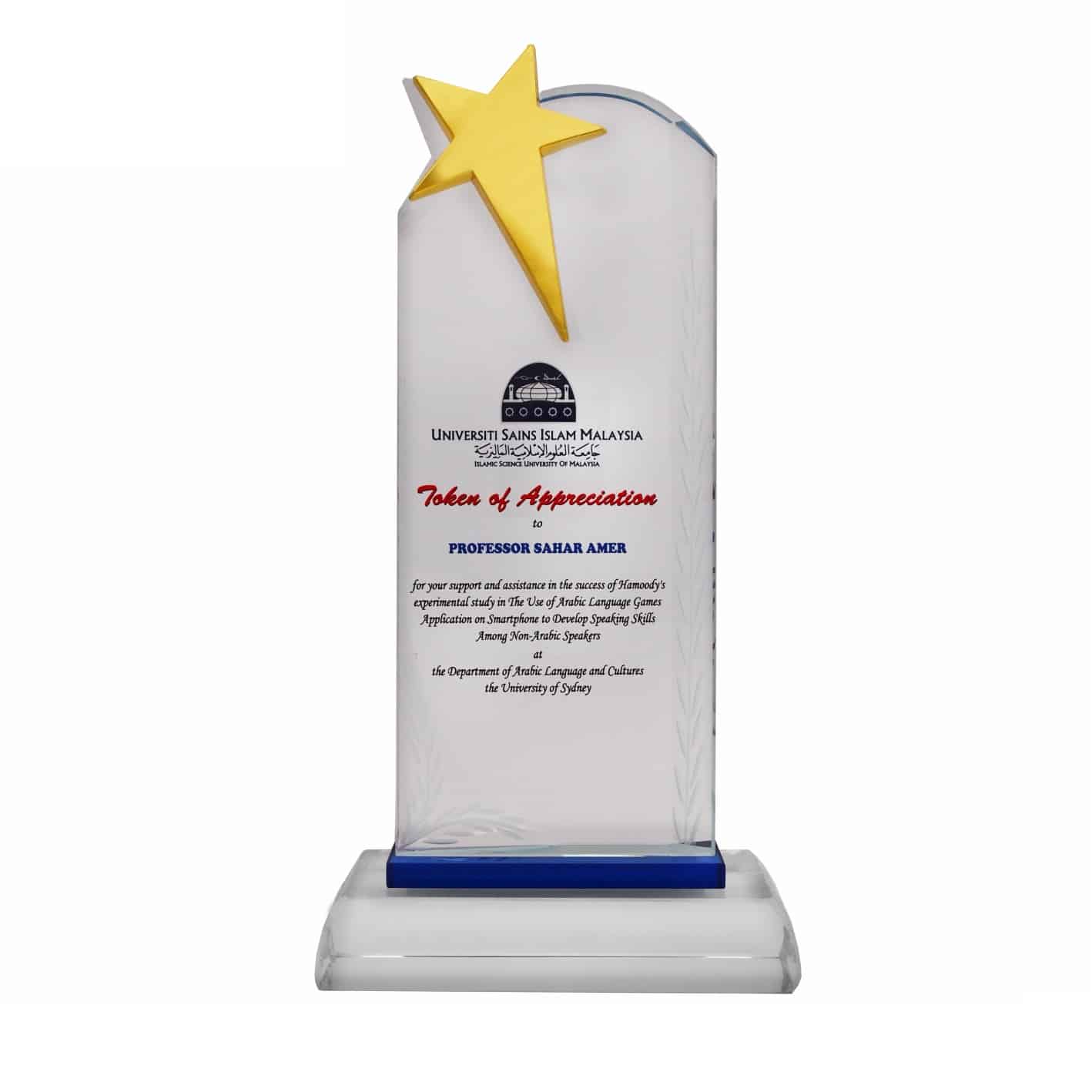 CR3084 – Exclusive Crystal Star Plaque Exclusive Crystal Star Plaque CR3084 - Exclusive Crystal Star Plaque quantity Add to cart SKU: CR3084 Categories: Crystal Plaques, Plaques Request a Quote Your Name (required) Your Email (required) Your Contact No (required) Model (required) Quantity Details Product details Description Exclusive Crystal Star Plaque Dimensions 275mm * 145mm * 45mm Related products Crystal Plaques, PlaquesCR8250 – Exclusive Crystal Glass Awards This product has multiple variants. The options may be chosen on the product page Crystal Plaques, PlaquesCR8204 – Exclusive Octagonal Crystal Glass Awards This product has multiple variants. The options may be chosen on the product page Crystal Plaques, PlaquesCR8252 – Exclusive Crystal Glass Awards
